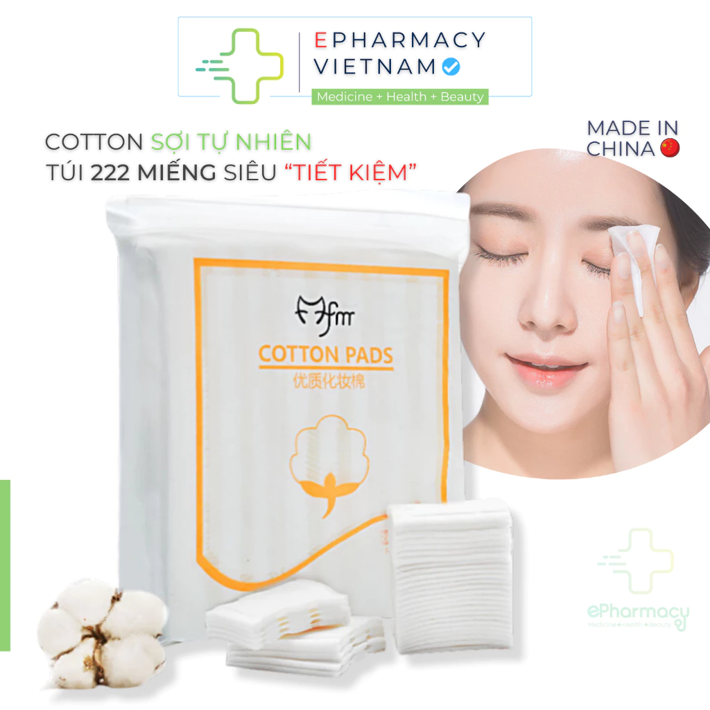💦 Bông tẩy trang 222 miếng chất bông co giãn, dày dặn, hiệu quả làm sạch tốt. Thiết kế bên ngoài bao bì khá tiện lợi và hợp vệ sinhMềm mịn, độ trắng tự nhiên, không sử dụng hóa chất tẩy trắng độc hại. Dày dặn và độ nén tốt, nên khi sử dụng không bị dính nhiều sợi bông xơ lên da.