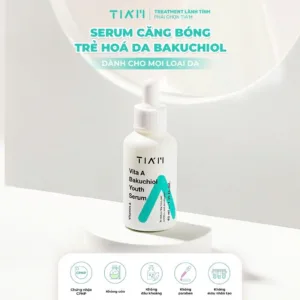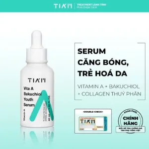 3. Tinh Chất Dưỡng Ẩm, Ngừa Lão Hóa Tiam Vita A Bakuchiol Youth Serum là tinh chất dưỡng thuộc thương hiệu Tiam đến từ Hàn Quốc với công thức phức hợp gồm 0.27% Vitamin A – Retinyl palmitate, 0.2% Bakuchiol, Adenosine, Collagen chiết xuất từ cá hồi giúp giảm vết nhăn, ngăn ngừa lão hóa và cải thiện cấu trúc làn da hiệu quả.